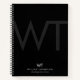 Ein berufliches schwarzes Businessnotebook, das mit Ihren Monogramm-Initialen und Details individuell angepasst werden kann. Ideal für Büro, Zuhause, Geschenk etc.