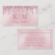 Diese stilvolle Visitenkarte ist mit einem glamourösen, gürtelfarbenen Hintergrund in Rosa und Rosa ausgestattet. Die hellrosa Glitzer-Sequenzen tropfen über den oberen Teil. Monogramm-Initialen werden unter dem Glitzer platziert, gefolgt von einem Beispielnamen, der in einem eleganten Script-Schriftart gedruckt wird. Die Rückseite der Visitenkarte weist einen Hintergrund mit einem weichen, rosa Glitzer auf.