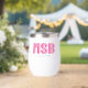 Dieses Schattenmonogramm des Blocktextes ist im Moment so im Trend. Ändern Sie einfach das Monogramm, um Ihre eigene Wasserflasche zu erstellen. Fügen Sie auch eine zusätzliche Zeile benutzerdefinierten Text unten hinzu. Das macht ein wirklich schönes Geburtstagsgeschenk, Junggeselinnen-Abschied oder Hochzeitsgeschenk. Ändern Sie einfach die Monogrammfarben, um Ihr Farbschema Anzug.
