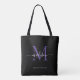 Modernes Schwarzes Lila Violet Monogram Eleganter Script Name Initial Tote Bag