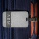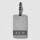 Luxuriöses Silber mit Karkohle Grau Band gebürsteter Metal Foil Monogram Name und anfänglicher Gepäckanhänger. Dieses Imitat Glitzer und glänzende Tasche Tag ist perfekt für Zurück in die Schule, Arbeit oder Reisen.