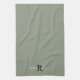 Modern Sage Green Monogram Script Initial Name Küchentuch