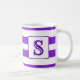 Diese niedliche Tasse weist lila und weiße Streifen auf und kann mit einem Initial sowohl vorne als auch hinten angepasst werden.
