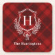 Initiales Red Kariert Winter Monogram Wappen Rechteckiger Pappuntersetzer