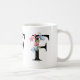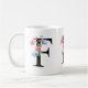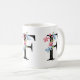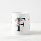 Eine personalisierte Kaffee-Tasse mit dem Buchstaben "F" Monogramm, mit dekorativen Aquarellbildern mit Blumen- und Blattbildern. Einfach mit Ihrem Namen anpassen oder ein einzigartiges Geschenk für Ihre Lieben schaffen.