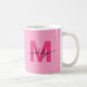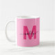 Personalisiert Modern Feminine Hot Pink Initial Name Monogram Kaffee Tasse. Diese ultra-feminine Tasse bringt jedem Kaffee- oder Teefreund eine spielerische, schicke Touch. Das Monogramm mit einem fett rosa, rosa und weichem Hintergrund mit einem eleganten schwarzen Skriptnamen wird beidseitig angezeigt und fügt ein personalisiertes, stilvolles Element aus jedem Winkel hinzu. Sein modernes minimalistisches Design, kombiniert mit einem lustigen, mädchenhaften Ambiente, macht es zu einem fantastischen Geschenk für Geburtstage, Hauswärme, Urlaub, und nur weil. Diese Tasse ist perfekt für Brautpartys, Junggeselinnen-Abschiede oder Hochzeitsgeschenke geeignet und verbindet klassische Eleganz mit einer trendigen, persönlichen Touch.