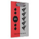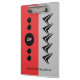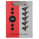 Office-Zwischenablage. Hinzufügen von Initialen und einem Namen. Grau und rot, mit Pfeilformen.