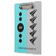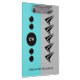 Office-Zwischenablage. Hinzufügen von Initialen und einem Namen. Grau und Türkis, mit Pfeilformen.