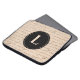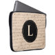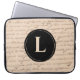 Dieser schöne Laptop-Ärmel verfügt über ein individuelles Monogramm, das in einem schwarzen Kreis auf einem Hintergrund aus einem antiken handgeschriebenen Brief in schöner Kalligrafie initiiert wird. Ein perfektes Geschenk für einen Schriftsteller oder Leser.