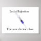 Dekorieren Sie Ihre Arbeitsfläche, Ihren Schreibtisch oder einen anderen leeren Raum mit diesem 7" x 5" Premium Leinwand Poster von Blazing Sirens. Oben steht die Formulierung "letale Injektion", darunter eine Spritze. Unter der Spritze befinden sich die Worte "Der neue elektrische Stuhl".