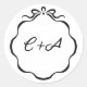 Inkalte Ribbons und Bow-Initialen Hochzeit Runder Aufkleber