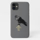 A jet black raven sits atop a Fleur-de-Lis church spire