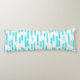 Ein Wiederholmuster mit leuchtend blau/türkis, fett gerundeten Linien in einer handbedruckten, bedrückten, farbigen Textur auf weißem Hintergrund. Erhältlich in einer breiten Farbpalette, inklusive dem Rückwärtsdruck.