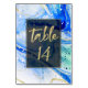Inky Splash Blauer Marmor mit Goldfolie Hochzeit Tischnummer