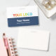Dieses maßgeschneiderte, horizontale Abzeichen für Mitarbeiter mit Namen, Beruf, Jobtitel und Inline-Firmenlogo ist einfach zu personalisieren. Ein einfaches Business-Design in marineblau-weiß-farbenen, vollständig anpassbaren, serifenlosen, einfachen und modernen Schriftart und einem beruflichen und klaren Look. Erhältlich mit Lanyard, Metallklammer oder Retrakabel. Jede Farbe, jeder Schriftart. Keine Mindestbestellung. Firmenname-Tag, identisches Design: https://www.zazzle.com/z/ng7jc03n?rf=238671673565232248