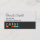 Ein Farbkasten mit der Wortfarbe darüber ist das Grundbild für dieses Design. Die untere Hälfte ist eine graue Farbe mit einer Textur und die obere ist ein Weiß mit einem grauen Stoff aussehenden Textur angewendet. Das ist eine sehr lustige, moderne und berufliche Visitenkarte, die für viele Berufe, aber besonders für Innenarchitekten, funktionieren kann.