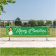 Dieses Weihnachtsbanner wird im Outdoor-Stil mit Kräutern gezeigt. Wählen Sie aus dem Innen- oder Außenbereich, mit oder ohne Kräutern. In Grün mit Weiß "Frohe Weihnachten" mit Schneemann und extravagantes Drehbuch mit zwei goldfarbenen Wirbel von Sternen auf jedem Ende gezeigt. Passen Sie an oder kaufen Sie nach Ihren Vorstellungen.