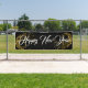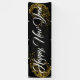 Dieses Holiday Banner wird im Outdoor-Stil mit Kräutern gezeigt. Wählen Sie aus dem Innen- oder Außenbereich, mit oder ohne Kräutern. Schwarz mit weißem "Happy New Year" extravagantes Drehbuch mit zwei goldfarbenen Wirbel von Sternen auf jedem Ende gezeigt. Passen Sie an oder kaufen Sie nach Ihren Vorstellungen.