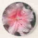 Ein Foto einer weichen rosa Azalea, die Blütenblätter mit Regentropfen nach einem Frühlingssturm bestreut und durch selektive Färbung verstärkt.