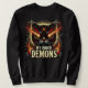 Ein gewagtes und künstlerisches Design mit einem heftigen Katzengesicht mit leuchtenden Holzflüstern, leuchtenden Augen und einem subtilen Halo, begleitet von dem Text "Meine inneren Dämonen"