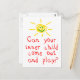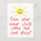 Die lustige Postkarte sagt: "Kann dein inneres Kind rauskommen und spielen?"