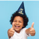 Krönen Sie Ihre Feier mit diesem individuell anpassbaren Partyhut "Out to Space Birthday"! Entworfen mit spielerischen Raketen, leuchtenden Sternen und einem lebendigen Galaxie-H