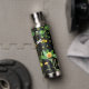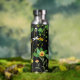 Sommerbienen und Libellen auf blühenden Kräuterpflanzen-Pflanze und schwarzem Hintergrund.