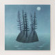 Eine abgelegene Insel inmitten des Ozeans mit Pinienbäumen. Der Mond scheint auf dieser friedlichen Szene, und das Abenteuer weint! Originelle Gemälde aus der Jahreszeit von Nic Squirrell.