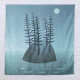 Eine abgelegene Insel inmitten des blauen Ozeans mit Kiefernbäumen. Der Mond scheint auf dieser friedlichen Szene, und das Abenteuer weint! Originelle Gemälde aus der Jahreszeit von Nic Squirrell.