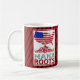 Insel Man Manx American Coffee Cup. USA Map mit einer Mischung aus American und Isle of Man Flagge. Mit dem Text MANX ROOTS unter Baumwurzeln.