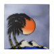 Beeinflussende Palmen auf Insel setzen mit orange Mond an der Dämmerung auf den Strand