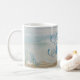 Inspiration Zitat auf Aquarellboden mit Muscheln und Sand.