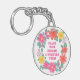 Passen Sie diesen Schlüsselanhänger mit Ihrem Monogramm auf der Rückseite und Ihrem eigenen inspirierenden, motivierend Zitat oder Ihrer Bestätigung auf der Vorderseite an. Es zeichnet sich durch ein modernes Design mit rosa, orangefarbenen und gelben Blume aus.