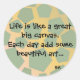 Ein großes inspirierendes Sprichwort auf einem weichen, rosa und orangefarbenen Hintergrund mit grünen Hexagonformen, die verstreut sind.
