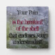 Inspiration Zitat, das lautet: Ihr Schmerz ist das Zerbrechen der Muschel, die Ihr Verständnis umschließt. Der Hintergrund ist ein cooles Foto einer alten verlassenen Steinmauer, deren verwitterte Struktur durch grünes Moos geprägt ist. Interessante Details über diese Natur themed Textur mit einem Grunge-Stil.