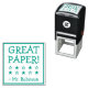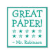 Dieses anregende Design der Gummi Briefmarke beinhaltet die inspirierende Botschaft "GREAT PAPER!" und einen eigenen Lehrernamen. Es zeichnet sich auch durch dekorative Sternformen aus. Es könnte von einem Lehrer, Lehrer, Lehrer oder Tutor genutzt werden, um anzuerkennen, dass ein Schüler gut abgeschnitten hat.