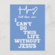 Inspiration Jesus Zitat mit Heartbeat Christliche Postkarten Trendy Grunge Typografie mit Step-Down-Design lautet: "Ich kann dieses Leben nicht ohne Jesus" Glaube, Hoffnung, Liebe Heartbeat Akzent. Inspiration, Ermutigung, tröstende Botschaft. Christliches Quotes-Shop