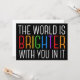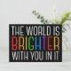 Die Welt ist heller mit dir darin. Seien Sie eine positive Kraft auf diesem Planeten mit diesem glücklichen motivierend Zitat für einen Freund mit Depression. Schönes LGBTQ Gay Pride Inklusivitätsdesign. Teilen Sie dieses motivierend Zitat, das Spirituosen mit seinen Bekenntnissen ermutigt und hebt. Ideal für einen Psychologen mit depressiven psychischen Patienten oder für jemanden, der Selbstmordgedanken hat.