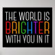 Die Welt ist heller mit dir darin. Seien Sie eine positive Kraft auf diesem Planeten mit diesem glücklichen motivierend Zitat für einen Freund mit Depression. Wunderschönes LGBTQ Gay Pride Inklusivitätsposter. Teilen Sie dieses motivierend Zitat, das Spirituosen mit seinen Bekenntnissen ermutigt und hebt. Ideal für einen Psychologen mit depressiven psychischen Patienten oder für jemanden, der Selbstmordgedanken hat.
