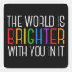 Die Welt ist heller mit dir darin. Seien Sie eine positive Kraft auf diesem Planeten mit diesem glücklichen motivierend Zitat für einen Freund mit Depression. Schöner LGBTQ Gay Pride Inklusivitätsaufkleber. Teilen Sie dieses motivierend Zitat, das Spirituosen mit seinen Bekenntnissen ermutigt und hebt. Ideal für einen Psychologen mit depressiven psychischen Patienten oder für jemanden, der Selbstmordgedanken hat.