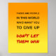 Dieses inspirierende Poster hat ein Zitat, das Sie ermutigen soll, positiv zu denken und stark zu sein. Der Text lautet: "ES GIBT MENSCHEN IN DIESER WELT, DIE DICH GEWOLLT, AUFZUGEBEN. Lass IHNEN NICHT ZU GEWINNEN" - in schwarz und tiefrot, auf hellgelber und orangefarbenem Hintergrund.
