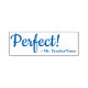 Dieses lustige Design aus Gummi-Briefmarke zeigt die positive Botschaft "Perfect!" und den Namen eines personalisierten Lehrers. Es könnte von einem Lehrer, Pädagogen oder Tutor verwendet werden, um zu zeigen, dass der Schüler eine großartige Arbeit geleistet hat.