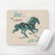 Brighten Sie Ihr Büro mit diesem einzigartigen Pferdemousepad, das eine Inspiration darstellt. Es enthält ein galoppierendes Pferd in Türkis, Schwarz & Gold und die Inspirierend Worte..."Leben Sie wie jemand Verlassen das Tor offen"! Original Grafik Design erstellt von Artist Kerry Miler.