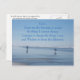 Postkarte mit dem Foto eines Strandspazierenbildes, das entlang eines Strandabschnitts verläuft, zusammen mit den inspirierenden Worten des Gebets der Stille, das in blauer Schrift gedruckt wurde. Passen Sie die Rückseite der Postkarte nach Wunsch an. Wählen Sie aus matt oder glänzend.