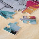 A puzzle with an inspirational quote that depicts an African-American woman wearing sunglasses that reflect the city's skyline. She is standing against a wall full of graffiti street art and the whole illustration is in black and white except her sunglasses and the wall behind her is in color.