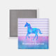 Ein Magnet mit einem inspirierenden Zitat mit einem Horsethema. Das Zitat besagt, dass Live wie jemand das Tor geöffnet verlassen hat. Mit einem Bild eines Aquarellpferdes, das frei läuft. In blauen und lila Aquarellen gestrichen. Der Hintergrund sind Vintage lila Streifen mit einem blau-rosa Wasserfarbenrand.