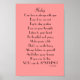 Personalisieren Sie dieses schöne Gedicht, indem Sie Ihren Töchternamen hinzufügen. Das ideale Geschenk für den Start in den Kindergarten, im Abschluss oder zu jeder Zeit. Sie können die Hintergrundfarbe ändern, wenn Sie unseren Stor für viele andere Auswahlmöglichkeiten sehen möchten.