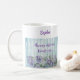 Schöne Tasse mit blauen und lila Farbtönen und Blumendesign. IMMER WÄHLEN KINDNESS ist auf dem Imitat Holzzaun geschrieben in dekorativen Schriften über den Blume. Personalisieren Sie mit Ihrem/Empfängernamen!
