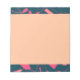 Dieses Notepad hat zwei bedruckte Ränder - oben und unten - in denen rosa Blätter auf einer dunklen Oberfläche gezeichnet werden. Der Schreibbereich ist heller Lachs.