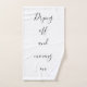 Diese tägliche Bestätigung erinnert Sie an die Selbstversorgung, egal ob Sie das Handtuch in diesem Moment benutzen oder einen Blick auf den Tag oder das Bett erhaschen. Es bietet eine positive Mentalbotschaft von "Abtrinken und weitermachen". Zeitgenössische schwarze Texttypografie-Zitate erinnern Sie daran, es alles gehen lassen und sich selbst Liebe. Positive Erinnerung als Ergänzung zu Meditation, Mantra oder Yoga-Übungen oder wann immer Sie Hilfe benötigen, um eine positive Einstellung wiederherzustellen. Ergänzende Artikel mit Redewendungen von Selbstwertgefühl sind in der Lagerkollektion erhältlich. © 2020 Kris Harty Step by Step Inspiration